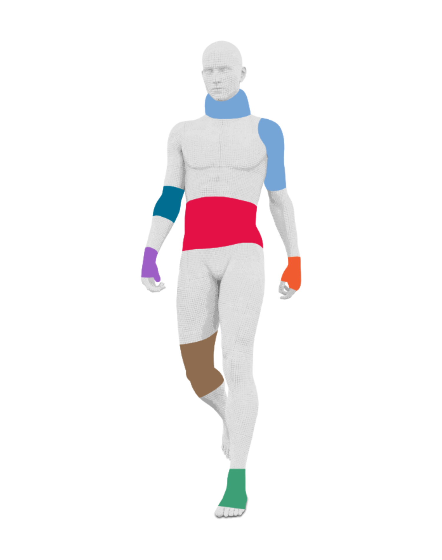 Klik op het lichaamsdeel waar jij pijn hebt en ontdek welke hulpmiddelen wij beschikbaar hebben voor dit lichaamsdeel.